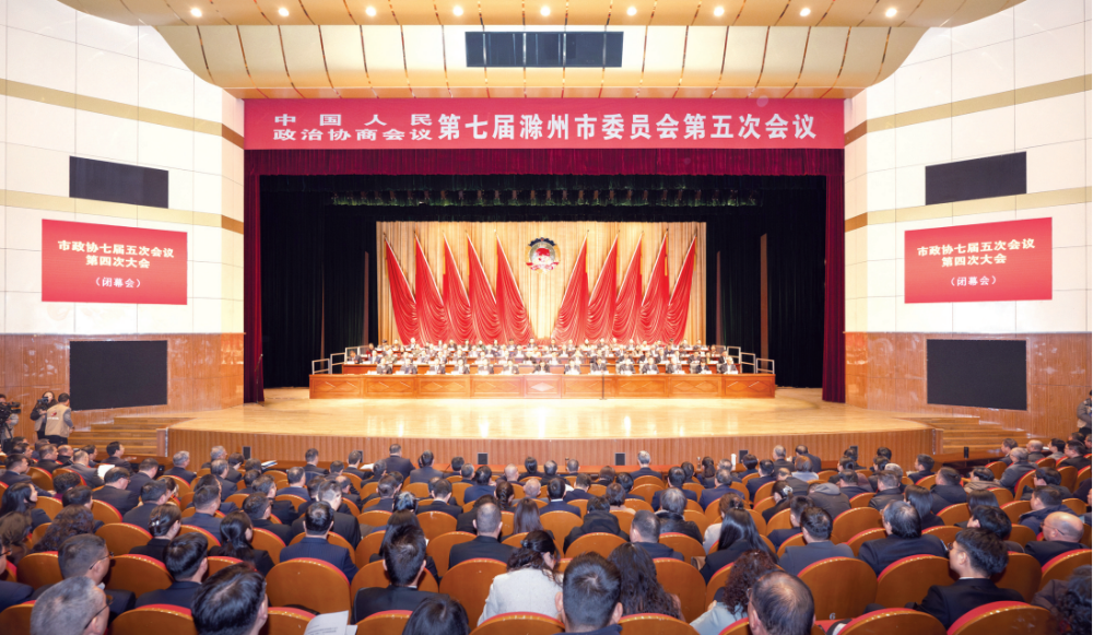 - 1月29日上午,中國(guó)人民政治協(xié)商會(huì)議第七屆滁州市委員會(huì)第五次會(huì)議圓滿完成各項(xiàng)議程,在滁州大劇院勝利閉幕。 市政協(xié)主席孫軍,市政協(xié)副主席高潮、焦義朝、王曉平、寧建斌、姚志江、鄒軍、馬有山、杜春花,市政協(xié)黨組成員周全教,市政協(xié)秘書長(zhǎng)陳學(xué)武在主席臺(tái)前排就座。 應(yīng)邀出席大會(huì)并在主席臺(tái)就座的有:中共滁州市委書記吳勁,市委副書記、市長(zhǎng)胡春華,市人大常委會(huì)主任胡孔勝,擔(dān)任過(guò)正廳職務(wù)的老同志陳維燦、李耀才、何希勇、王圖強(qiáng),市黨政軍領(lǐng)導(dǎo)和有關(guān)方面負(fù)責(zé)人時(shí)偉、周旭、李升和、鄭朝貴、姚凱、龔健勇、吳述林、王燕永、朱林、陳新志、李晗、楊甫祥、李寶君、查鏡波、王躍、姚志、金力、蘇虹、徐廣友、吳孝水、孫永進(jìn)、賀家平、馬飛、貢植平、劉江華、劉猛生、李玉科、徐軍、李如培、陳飏、許雪峰、汪上、黃文鏡、王春、徐崇華、高懷忠、王成山、陳素云、李世平、張志華、陶學(xué)功、胡愛(ài)軍、舒宏俊、蔣新志。 ...