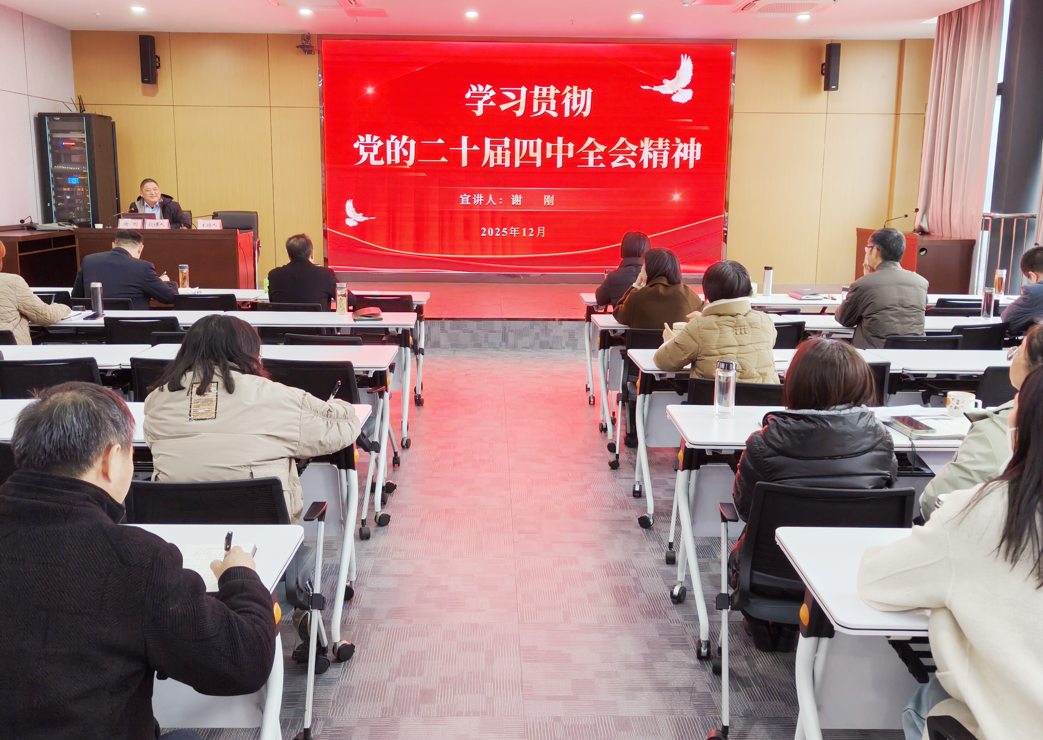 為進(jìn)一步學(xué)習(xí)好、宣傳好、貫徹好黨的二十屆四中全會精神,把思想和行動迅速統(tǒng)一到黨中央的決策部署上來,12月22日,市擔(dān)保集團(tuán)舉行“舉旗幟·送理論”學(xué)習(xí)貫徹黨的二十屆四中全會精神專題宣講報告會,邀請滁州廣播電視大學(xué)黨委委員、副校長謝剛作專題宣講報告,集團(tuán)及子公司全體干部職工參加學(xué)習(xí)。 報告系統(tǒng)闡釋了黨的二十屆四中全會的重大歷史意義、核心精神實質(zhì)和實踐要求,重點解讀了“十五五”時期發(fā)展指導(dǎo)方針、主要目標(biāo)和戰(zhàn)略任務(wù),并結(jié)合近期中央政治局會議及中央經(jīng)濟(jì)工作會議,為國有企業(yè)如何貫徹落實全會精神、把握經(jīng)濟(jì)大勢、融入國家戰(zhàn)略提供了細(xì)致的解讀與指導(dǎo),宣講內(nèi)容實踐性強、啟發(fā)性足。 會議強調(diào),學(xué)習(xí)貫徹全會精神,貴在理解、重在落實,集團(tuán)全體干部職工要以此次報告會為契機,在深化學(xué)習(xí)、融會貫通、擔(dān)當(dāng)實干上持續(xù)用力,切實把學(xué)習(xí)成果轉(zhuǎn)化為攻堅克難、推動發(fā)展的具體行動,全力完...